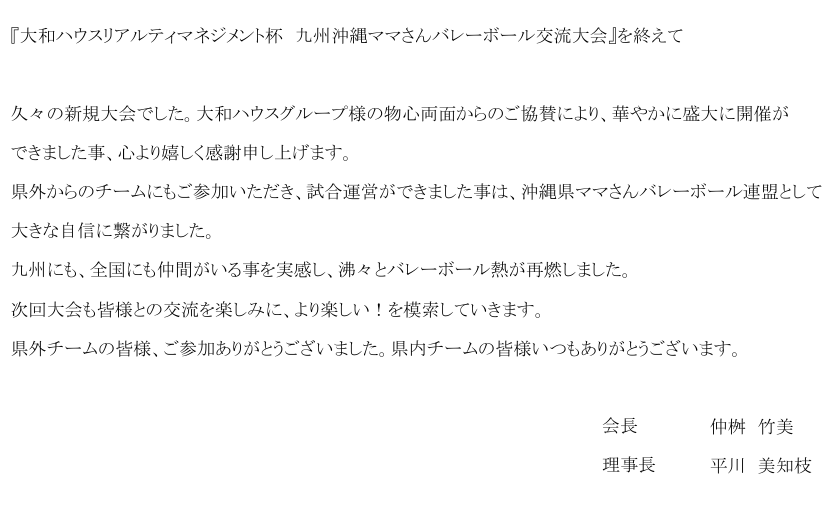 大和ハウスリアルティマネジメント杯 第1回九州沖縄ママさんバレーボール交流大会